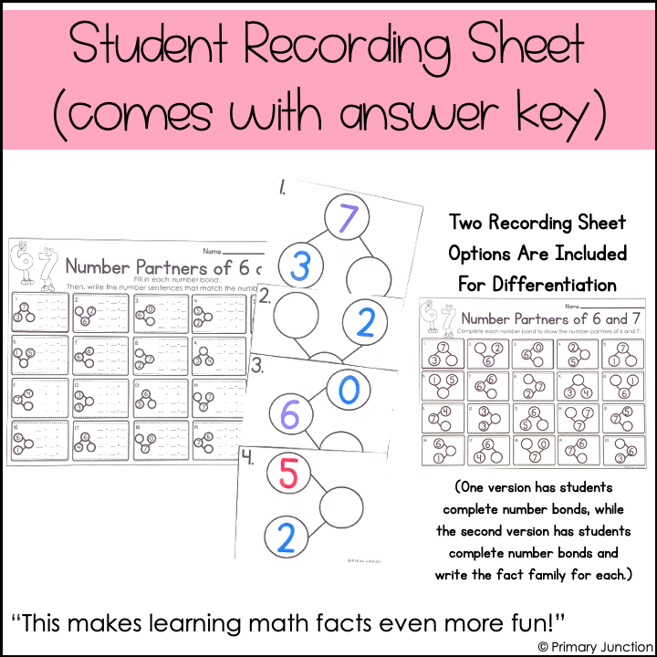• Student Recording Sheets (2 versions: one with just number bonds, and one with full fact families)