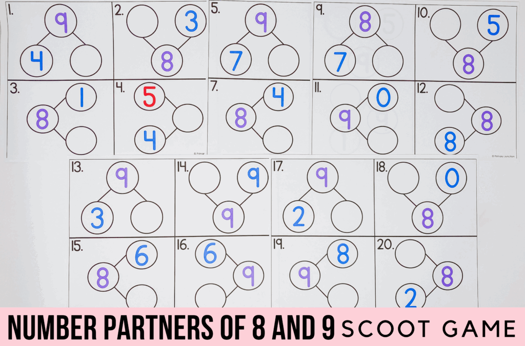 How I Teach Number Partners of 8 and 9 Without Losing My Mind – Number Partners of 8 and 9 Scoot Game