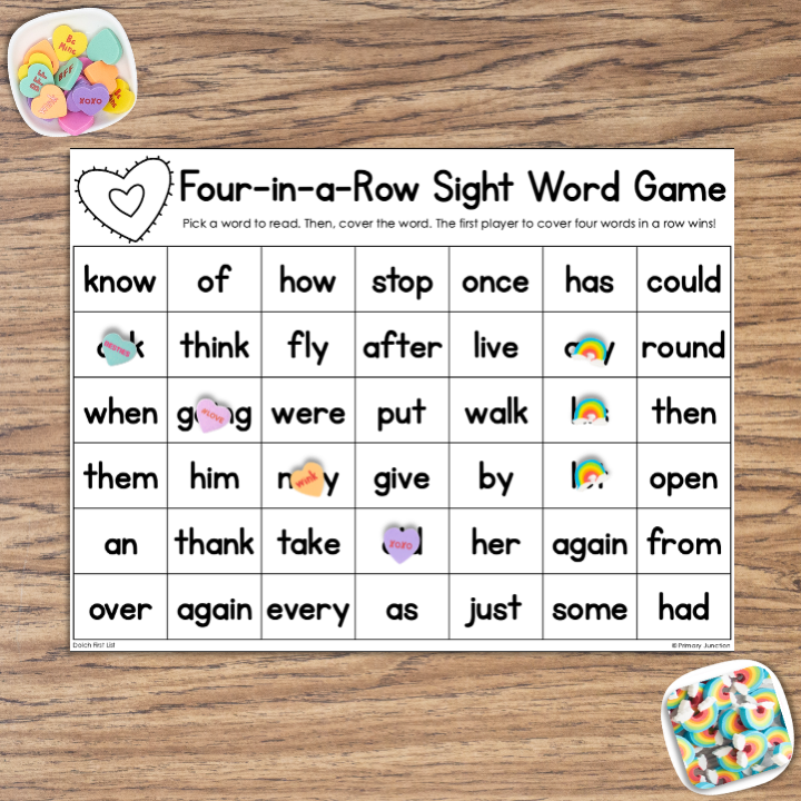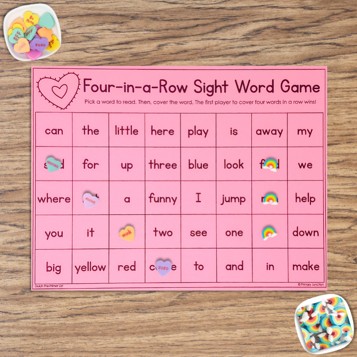 This activity is super low-prep and perfect for partner play. It’s an easy, engaging way to practice sight words during a busy February. Just add mini-erasers, Unifix cubes, or Bingo chips, and you’re ready to go! Students take turns reading and covering words as they race to get four in a row. It’s fun, effective, and a little bit of sneaky practice to keep learning going strong during this festive month!