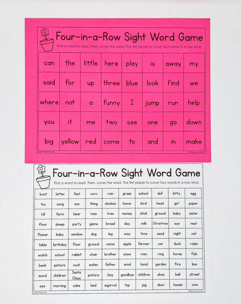 This free Spring Four-in-a-Row Sight Word Game set includes boards for multiple Dolch and Fry lists, allowing you to use it with different levels or quickly differentiate instruction without extra effort. All of the included game boards have the same design, which also makes it easy to differentiate in your classroom.