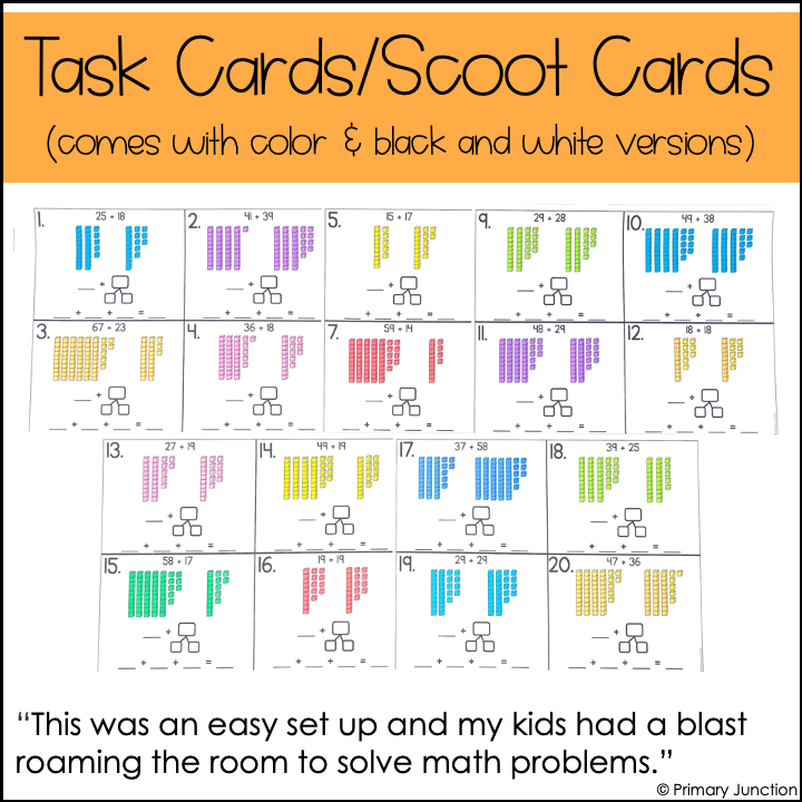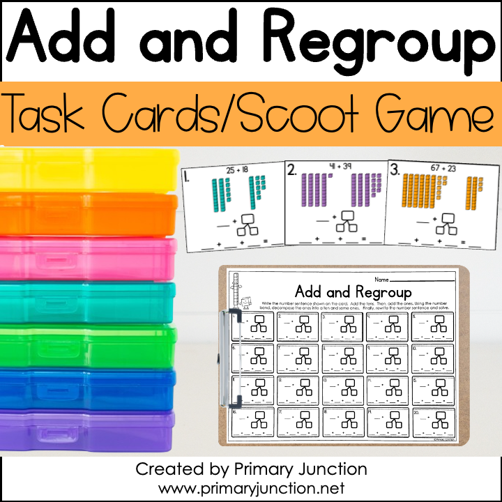 This Add and Regroup Scoot Game/Task Card Activity Can Be Used As: