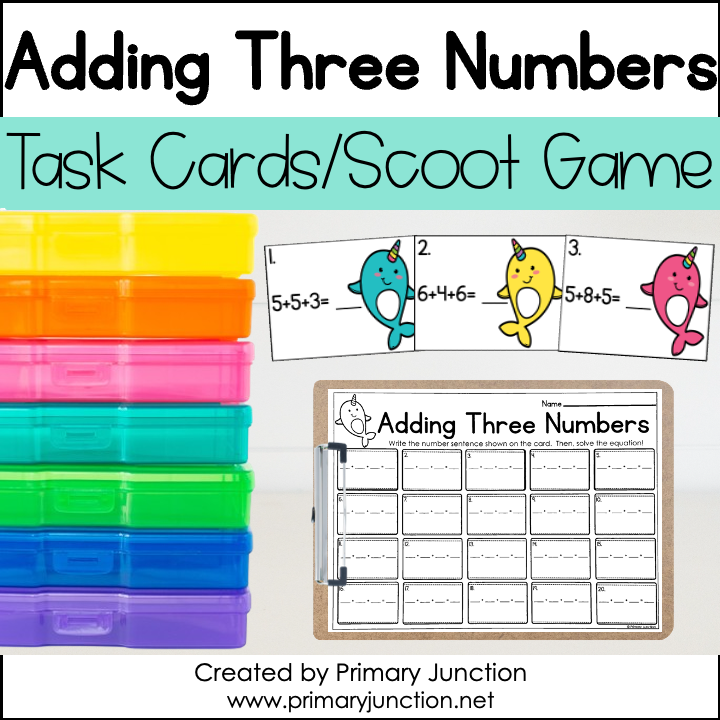Adding 3 Numbers Adding Three Numbers Task Cards Scoot Game Write the Room Math