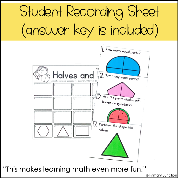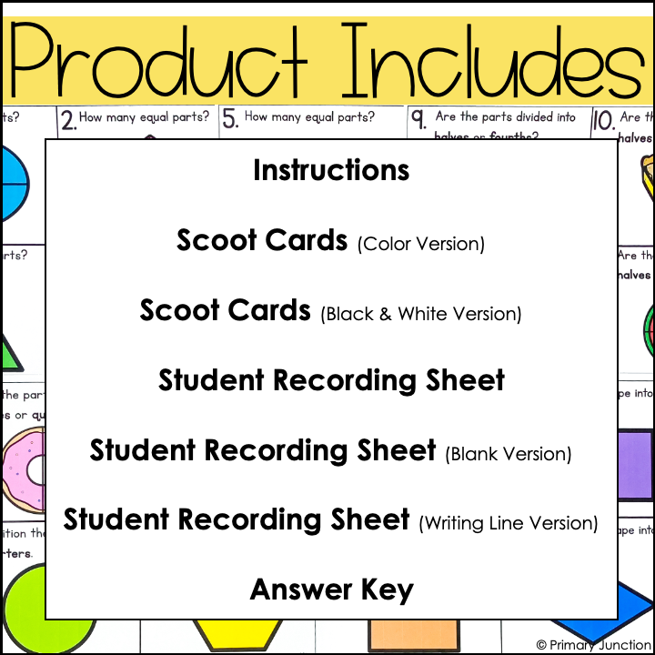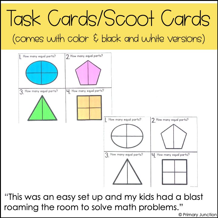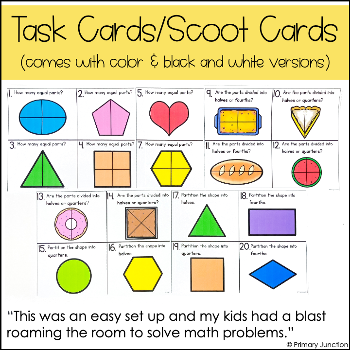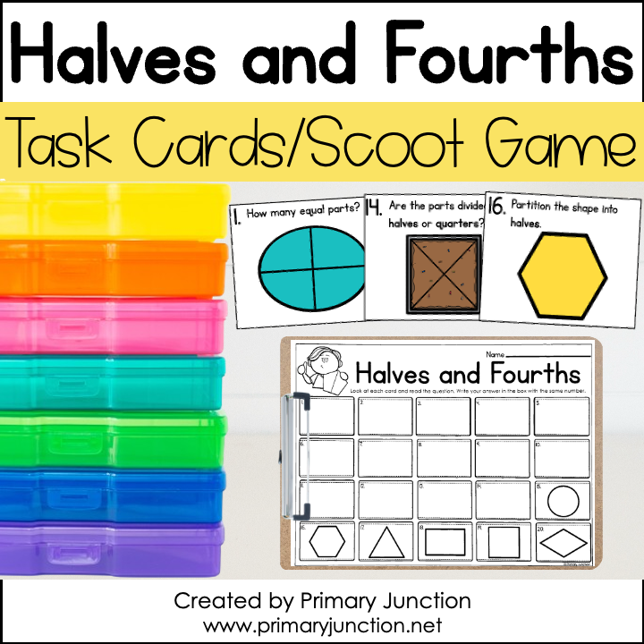 This Halves and Fourths Scoot Game helps students identify and partition shapes into 2 and 4 equal parts while practicing fractions in a fun, hands-on activity.