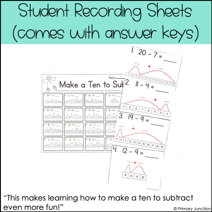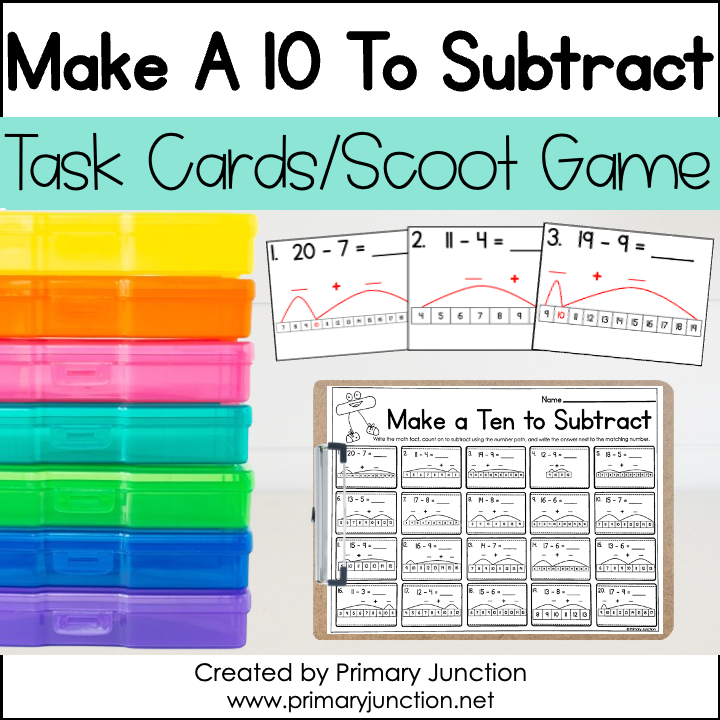 Are your students learning how to subtract using the Make a Ten to subtract strategy? Get students engaged and moving with this Make a Ten to Subtract Scoot Game! This subtraction within 20 activity can be used in many ways: a whole class scoot game, an independent write the room math center, or a fun small group activity using task cards. It’s perfect for any math lesson or math station!