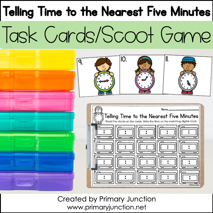 This Telling Time to the Nearest Five Minutes Scoot Game helps students read analog clocks and write digital time with fun, hands-on practice.