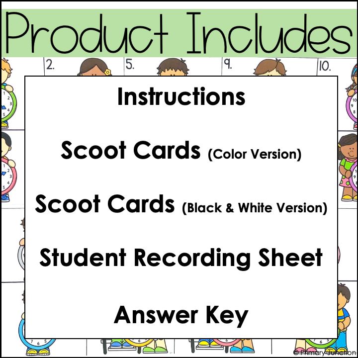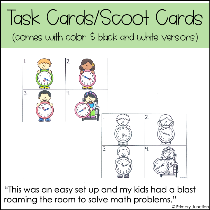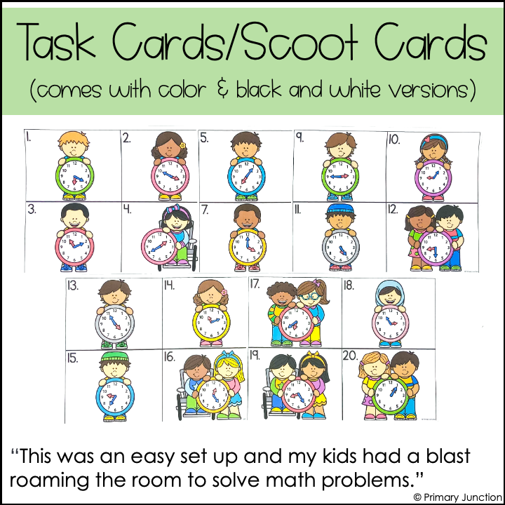 This Telling Time to the Nearest Five Minutes Scoot Game can be used in multiple ways: play as a whole-class Scoot Game, set it up as a Math Write the Room Center, or use it in small groups for extra practice. Whether you’re reviewing time to the nearest five minutes or introducing it, this Telling Time to the Nearest Five Minutes Scoot Game, Task Card set, or Write the Room Math Center will make practice fun, active, and effective.