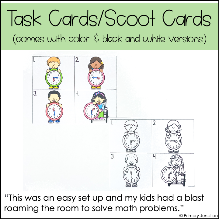 Telling Time to the Half Hour Scoot Game/Task Cards/Math Write the Room Center