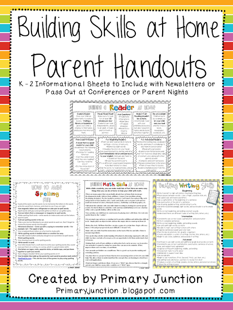 For the final installment in my parent handout series, I tackle Building Writing Skills at Home.ย Included are two handouts – one maps out an overview of writing development in grades K-2, while the other lists ways parents can build writing skills at home.ย As always, these are perfect to attach to a weekly newsletter or pass out at parent conferences!