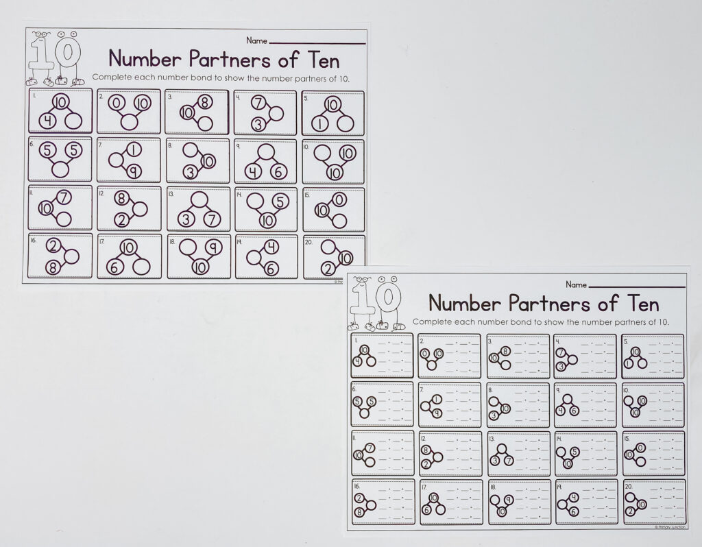 - One is just number bonds, which is perfect for early finishers or students still working on understanding the concept.